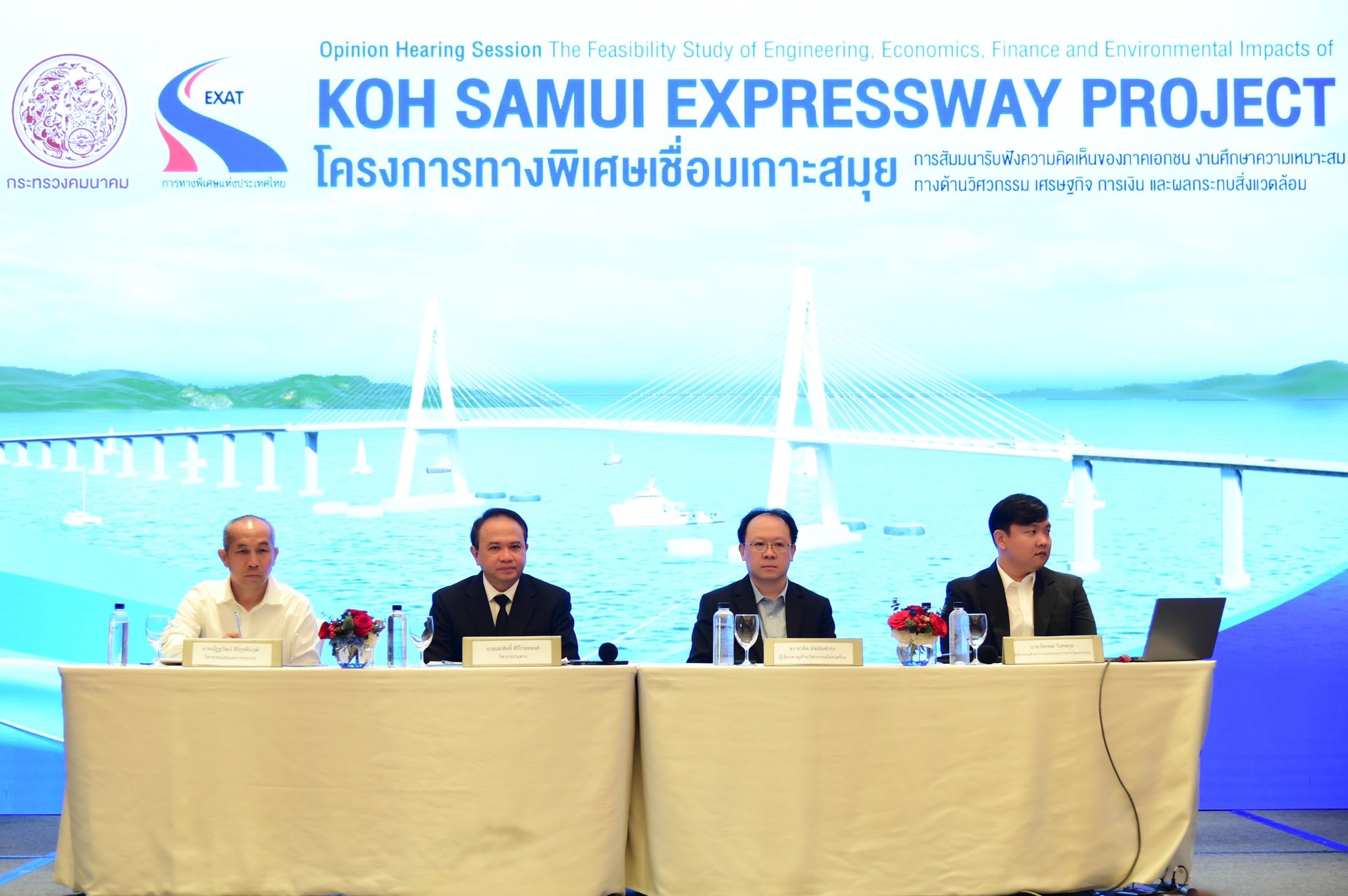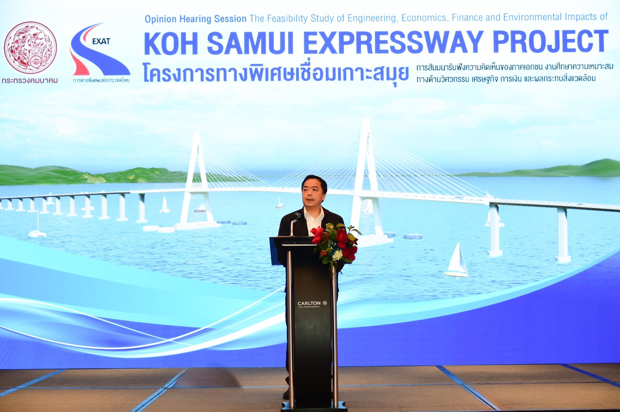 การทางพิเศษแห่งประเทศไทย (กทพ.) กระทรวงคมนาคม เปิดการสัมมนารับฟังความคิดเห็นของภาคเอกชน (Opinion hearing) งานศึกษาความเหมาะสมทางวิศวกรรม เศรษฐกิจ การเงิน และผลกระทบสิ่งแวดล้อม โครงการทางพิเศษเชื่อมเกาะสมุย เมื่อวันที่ 19 กุมภาพันธ์ 2569 นายสุรเชษฐ์ เหล่าพูลสุข ผู้ว่าการการทางพิเศษแห่งประเทศไทย (กทพ.) เป็นประธานในพิธีเปิดการสัมมนาฯ โดยมีวัตถุประสงค์หลักเพื่อแนะนำและให้ข้อมุลส่วนที่เป็นสาระสำคัญของโครงการแก่นักลงทุนของภาคเอกชน พร้อมทั้งรับฟังความคิดเห็น/ข้อเสนอแนะจากนักลงทุนและผุ้ที่เกี่ยวข้อง สำหรับนำไปประกอบการจัดทำรายงานการศึกษาและวิเคราะห์โครงการตามพระราชบัญญัติการร่วมลงทุนระหว่างรัฐกับเอกชน พ.ศ. 2562 ณ ห้องคาร์ลตัน แกรนด์ บอลรูม ชั้น 9 โรงแรมคมร์ลตัน กรุงเทพฯ สุขุมวิท รวมถึงมีภาคเอกชนให้ความสนใจเข้าร่วมประชุมทางไกลผ่านการประชุมออนไลน์ (ZOOM) การประชุมครั้งนี้ มีกลุ่มเป้าหมาย ได้แก่ ผู้ประกอบการงานก่อสร้าง ผู้ประกอบการจัดหาและติดตั้งระบบจัดการจราจร จดเก็บค่าผ่านทาง และที่เกี่ยวเนื่อง ผู้ประกอบการบริหารจัดการกิจการทางพิเศษ ทางหลวงพิเศษแลละที่เกี่ยว้อขง นักลงทุน ผู้ประกอบการ สถาบันการเงินและภาคเอกชนทั่วไปที่สนใจโครงการทั้งในประเทศและต่างประเทศ และกลุ่มผู้สนใจลงทะเบียนเพิ่มเติม มีผู้เข้าร่วมสัมมนาจำนวนทั้งสิ้น 815 คน แบ่งออกเป็นผู้เข้าร่วมประชุม ณ สถานที่จัด (Onsite) 197 คน ผู้เข้รา่วมประชุมออนไลน์ (Online) 38 คน และ Live Facbbook 580 คน