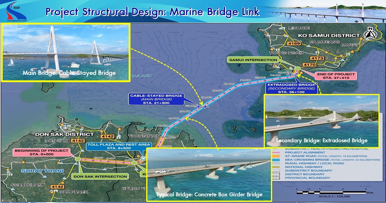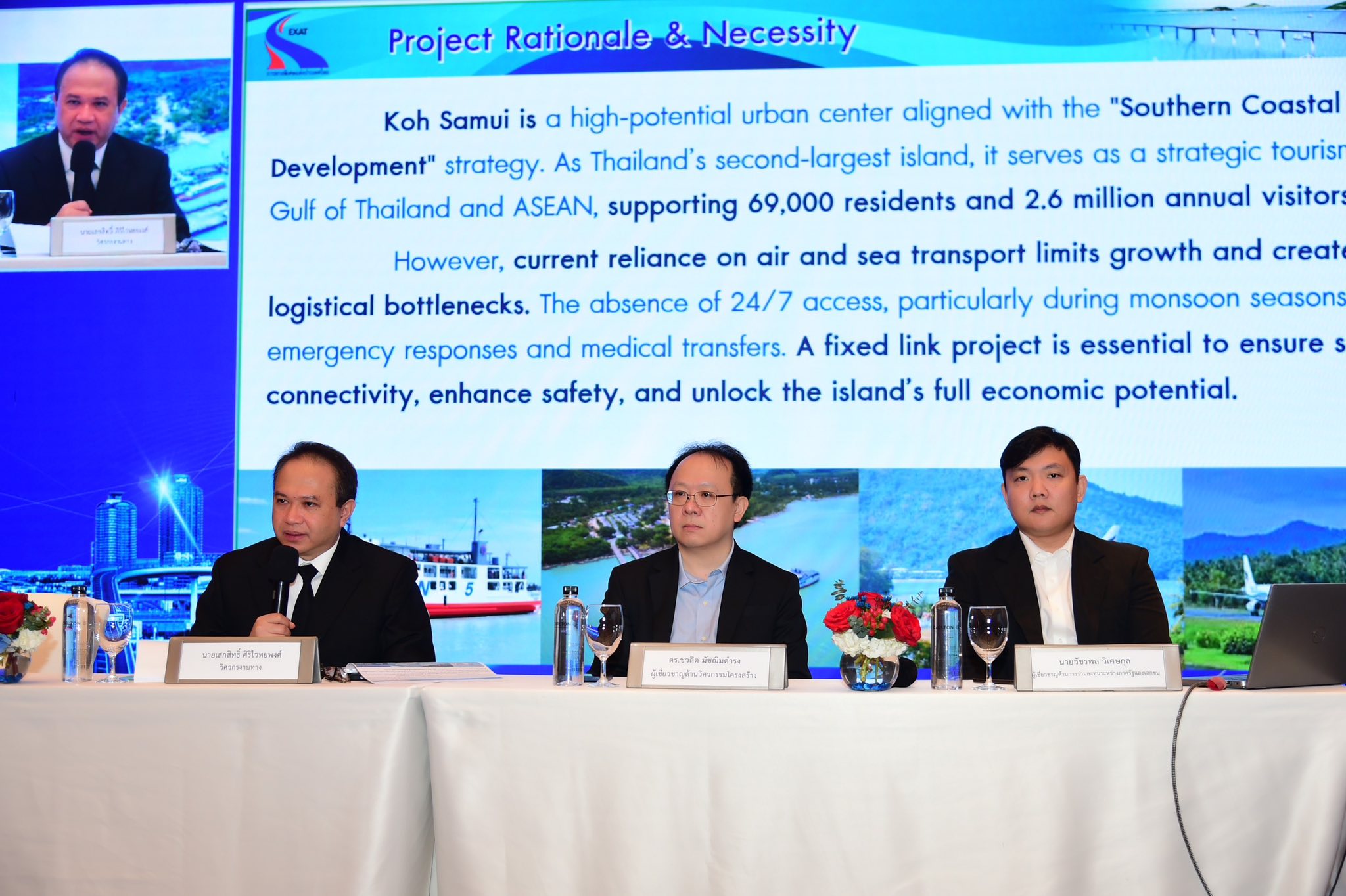 นายสุรเชษฐ์ เหล่าพูลสุข ผู้ว่าการการทางพิเศษแห่งประเทศไทย (กทพ.) กล่าวว่า การดำนเนิงานศึกษาความเหมาะสมทางด้านวิศวกรรม เศรษฐกิจ การเงิน และผลกระทบสิ่งแวดล้อม โครงการทางพิเศษเชื่อมเกาะสมุย มีความจำเป็นอย่างยิ่ง เพราะจะช่วยยกระดับความมั่นคงด้านคมนาคม ความปลอดภัยสาธารณะ และคุณภาพชีวิตของประชาชน ปัจจุบันการเดินทางเข้า-ออก เกาะสมุย มีเพียง 2 รูปแบบ คือ ทางน้ำและทางอากาศ ซึ่งมีข้อจำกัดและเปราะบางต่อสภาพอากาศ ส่งผลต่อประชาชน การท่องเที่ยว และการรับมือเหตุฉุกเฉิน อีกทั้งโครงการนี้ไม้่ได้เป็นเพียงสะพานเพื่อการคมนาคมเท่านั้น แต่เป็นโครงการที่ออกแบบให้รองรับระบบสาธารณูปโภคพื้นฐาน เช่น ระบบไฟฟ้า ระบบประปา และระบบสายสื่อสาร จนนำไปสู่การลงนาม MOU ร่วมกันระหว่าง การท่องพิเศษแห่งประเทศไทย (กทพ.) การไฟฟ้าส่วนภูมิภาค (กฟผ.) การประปาส่วนภูมิภาค (กปภ.) และบริษัท โทรคมนาคมแห่งชาติ จำกัด (มหาชน) เพื่อยกระดับโครงข่ายการคมนาคมและระบบสาธารณูปโภคพื้นฐานให้สามารถเชื่อมโยงแผ่นดินใหญ่สู่เกาะสมุยได้ตลอด 24 ชั่วโมง ตลอดจนสนับสนุนการเติบโตทางเศรษฐกิจและการท่องเที่ยวของประเทศอย่างยั่งยืน